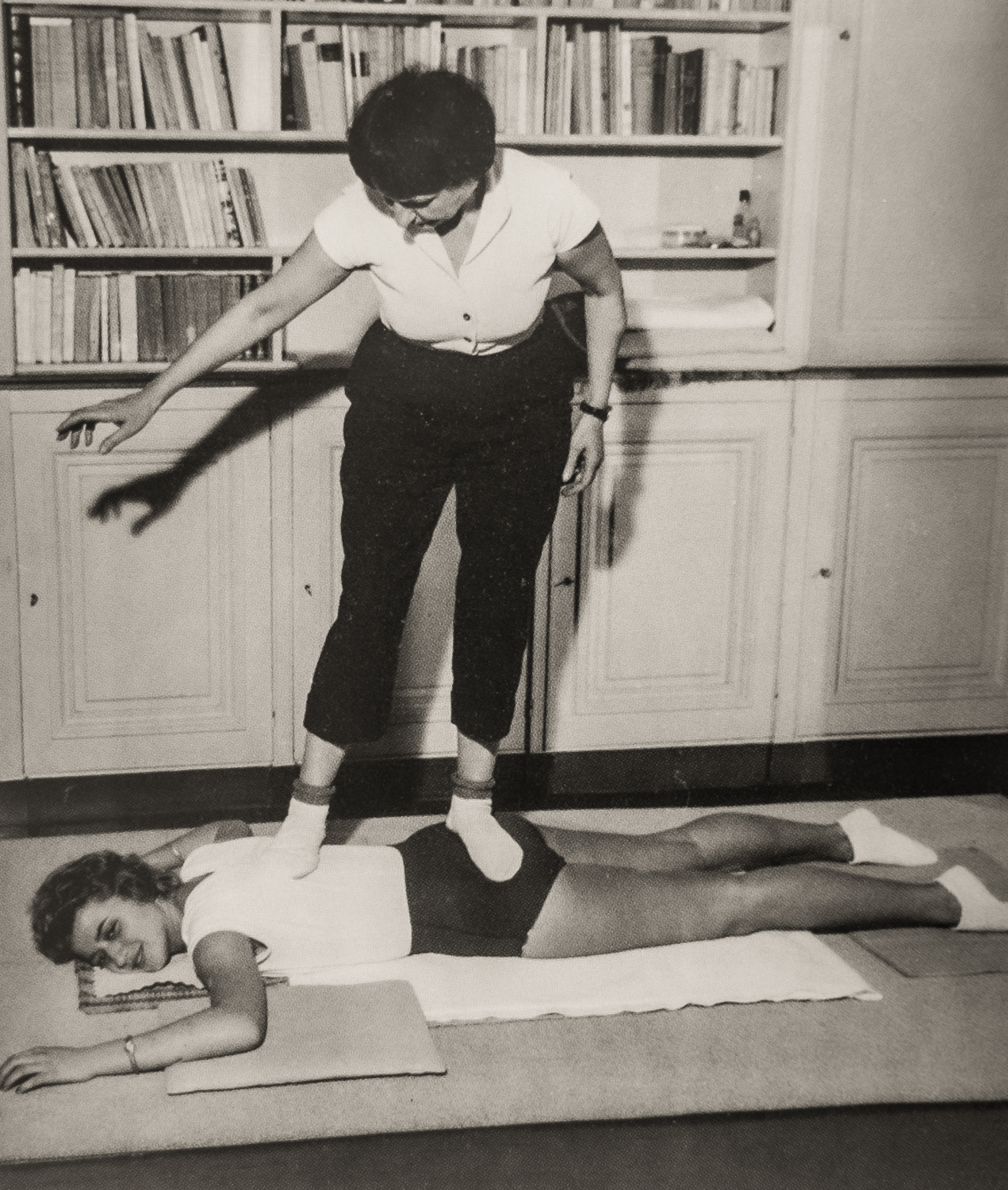Ajutată de o tânără, Lizica își începe demonstrația, călcând cu talpa piciorului pe fiecare vertebră pentru a elibera durerile provocate de oboseală și poziția incorectă, motivând că talpa piciorului este mai sensibilă decât mâna și că masează părțile dureroase cu degetele de la picioare fiindcă sunt mai puternice decât cele de la mâini.